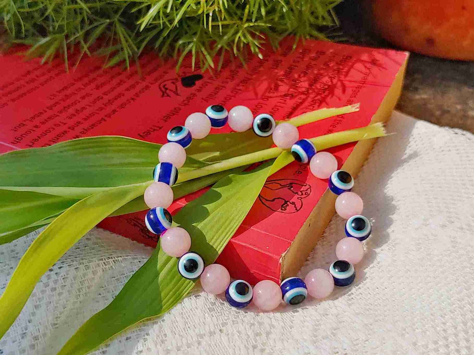 The gentle power of Rose Quartz to create a talisman of love and protection. The Evil Eye is a timeless guardian against negativity. Rose Quartz infuses love and compassion into every piece, while the Evil Eye symbol safeguards you from unwanted vibes. Embrace the dual magic of style and protection, as Rose Quartz works harmoniously to dispel negativity and invite a sense of calm and positivity into your life.