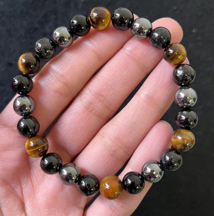 Shield yourself with powerful protective energies using this Triple Protection Bracelet, handcrafted with Tiger Eye, Hematite, and Black Obsidian. This unique combination of three strong crystals creates a powerful energy shield while boosting inner strength and confidence.